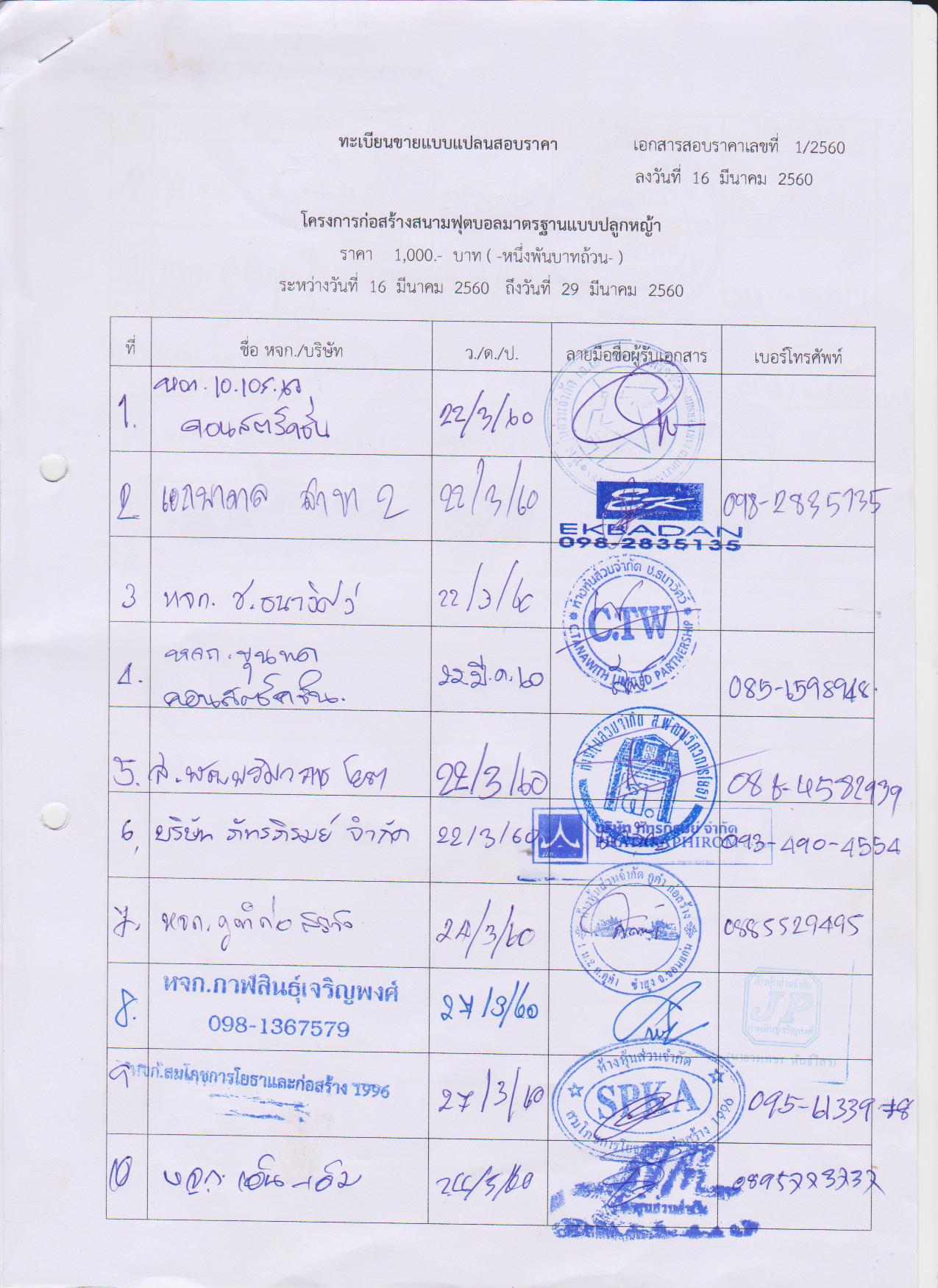 ประกาศรายชื่อผู้ชื้อเอกสารสอบราคาโครงการก่อสร้างสนามฟุตบอลมาตรฐานแบบปลูกหญ้า