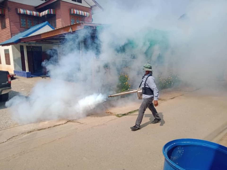นายกเทศมนตรีตำบลซำสูง รองนายกเทศมนตรี และที่ปรึกษานายก ลงพื้นที่ดูแลการฉีดพ่นยุงลายหมู่ที่ 5 ต.กระนวน