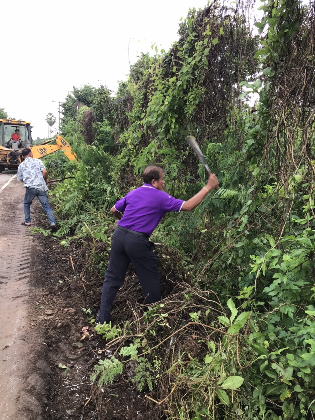 ซ่อมถนนลงยางมะตอย ตัดต้นไม้ตัดกิ่งไม้
